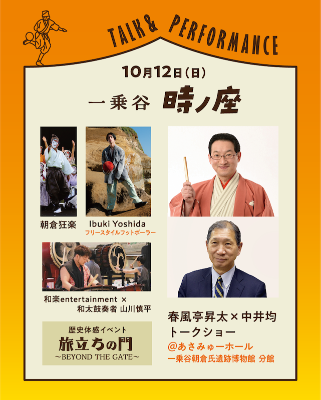 出演:春風亭昇太、吉田伊吹(フリースタイルフットボーラー)、和楽entertainment×和太鼓奏者山川慎平、朝倉狂楽、他