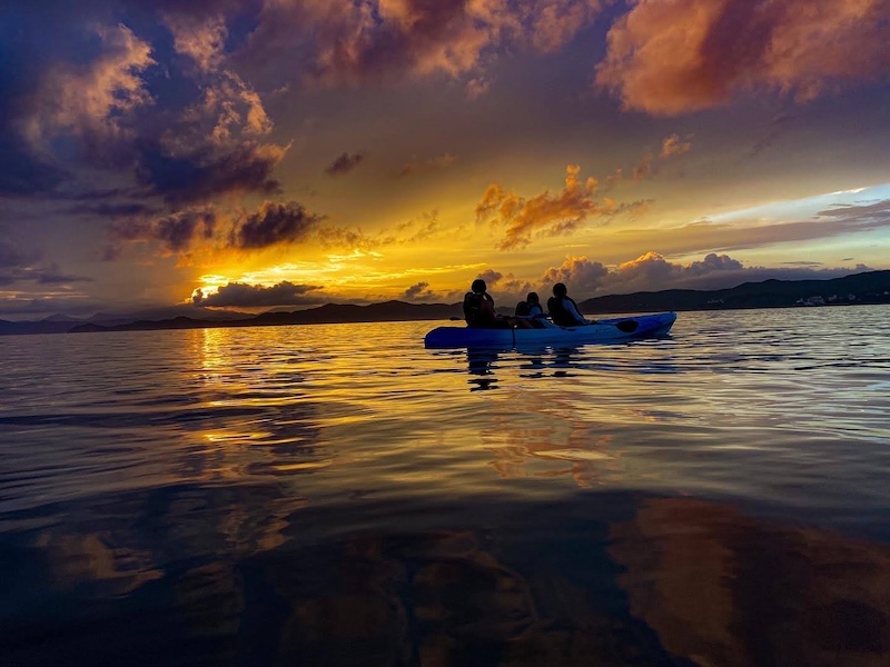 ピークタイムには波の音と海鳥の鳴き声と共に海面がオレンジ色に染まる瞬間は参加された方だけ味わあえる絶景に。特に10月は日の入り角度がカヤックで見るエリアではベストシーズンになります!