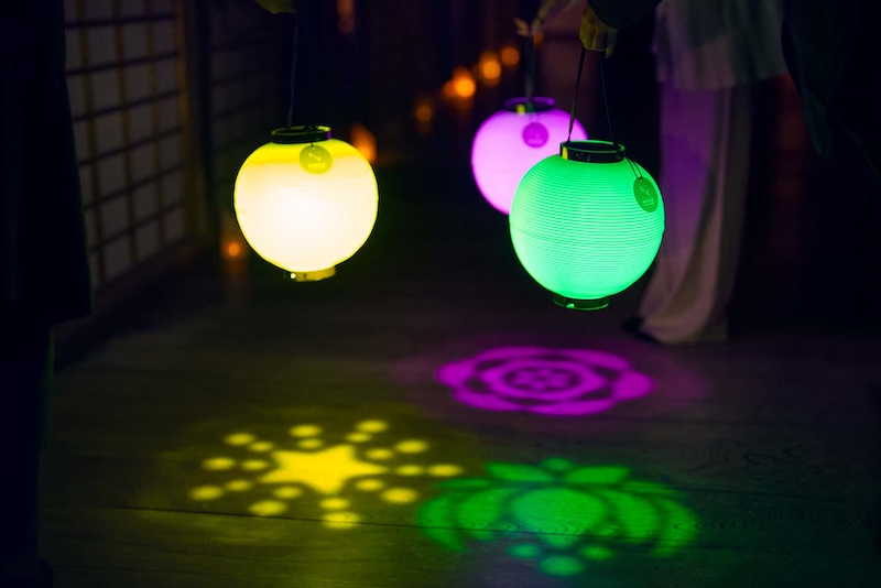 ネイキッドが開発したアートな提灯。提灯を片手に巡れば、地面に映し出される様々な光が会場を鮮やかに彩り、自分自身も光のアートの一部なることができます。今回は瑞巌寺に縁のある月、蓮、椿の3種の柄に5色のカラーバリエーションをご用意し、地域の魅力も再発見できます。