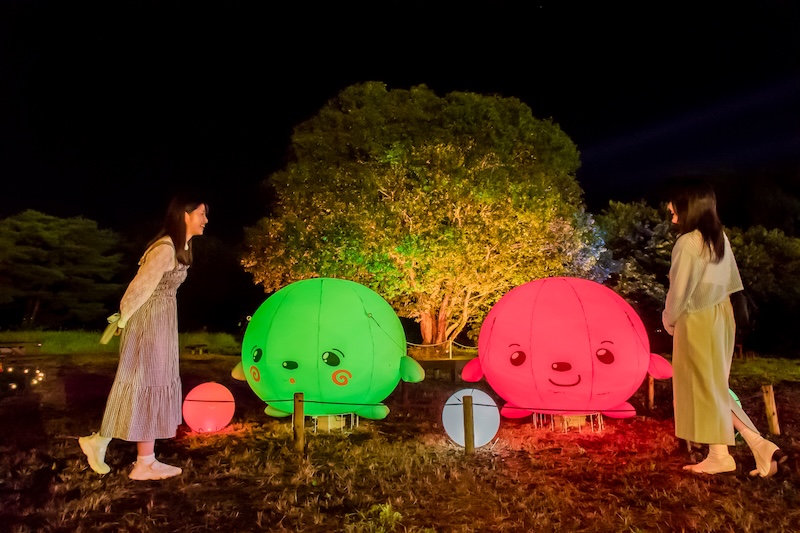 丘のふもとのみはらしの里では、コキアをモチーフにした、当公園のマスコットキャラクター「ふわりん」「もこ太」の大きなバルーンが登場。色とりどりな丘を背景に記念撮影が楽しめます。