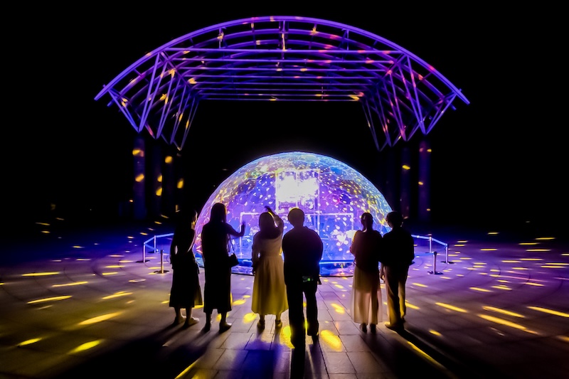 水のステージには直径6メートルの光のドームが出現。カラフルな光がMAN WITH A MISSIONの音楽とともに、水のステージを彩ります。フォトスポットも設置されており、ご来園の記念に写真撮影ができます。幻想的な空間で、夢のようなひとときをお楽しみいただけます。