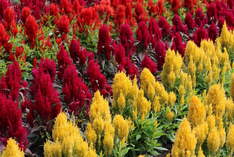 ■約 8,000 ㎡の斜面に広がる1万株のコキアと1万株の園芸種が織りなす色彩豊かな花絨毯を展開