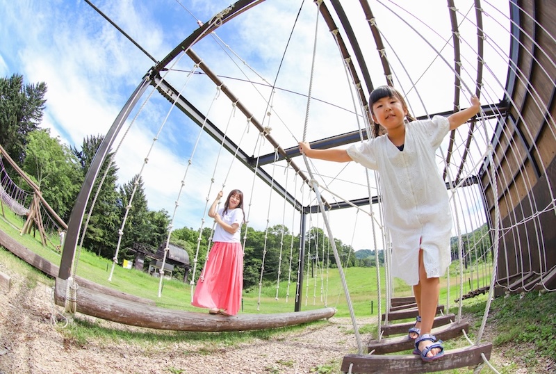 通路はすべて舗装、広々としたドッグランを備えペット同伴OK。中腹にはトランポリンやアスレチックを揃えた「たんばランド」を設置し、ご家族皆様で安心して散策と遊具をお楽しみいただけます。