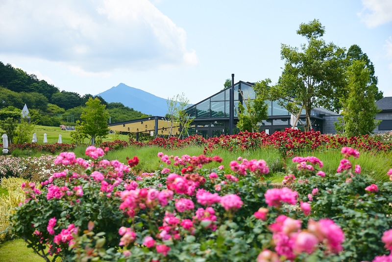 「見るから感じる」フラワーパークをコンセプトに、秋には約800品種・8000株のバラが見頃を迎え、園内は華やかな香りに包まれます。秋バラとマリーゴールドの競演が幻想的なライトアップイベント「Moonlight Rose Garden」では、月夜に浮かびあがる夜のバラ園を楽しむことできます。カフェやショップも充実し、地元の恵みを味わうことができます。
