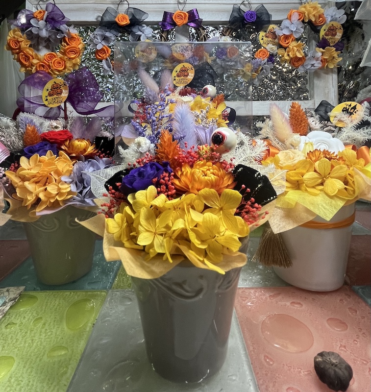ドライフラワーを使ったハロウィンアレンジリース販売