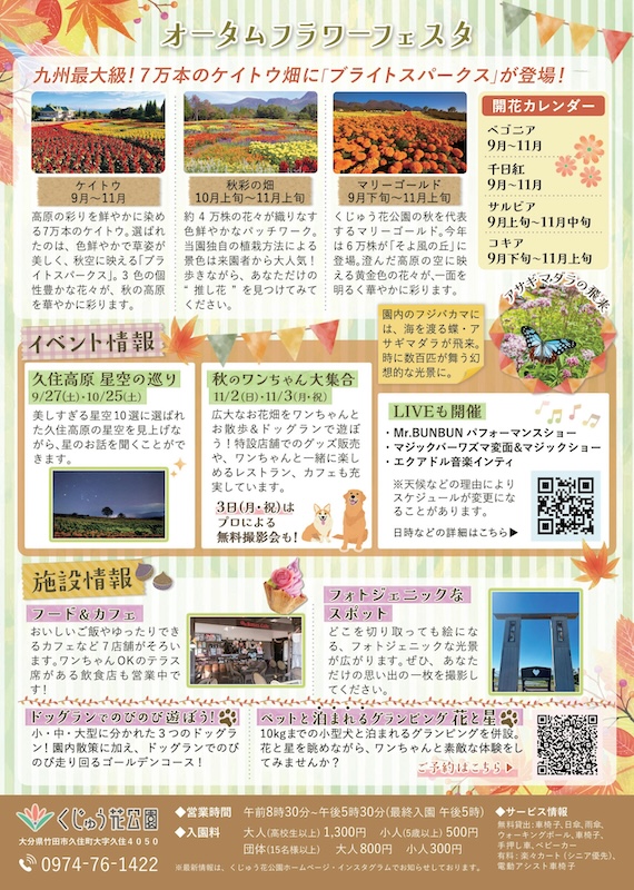 詳細は「くじゅう花公園」ホームページ、公式Instagramをご覧ください