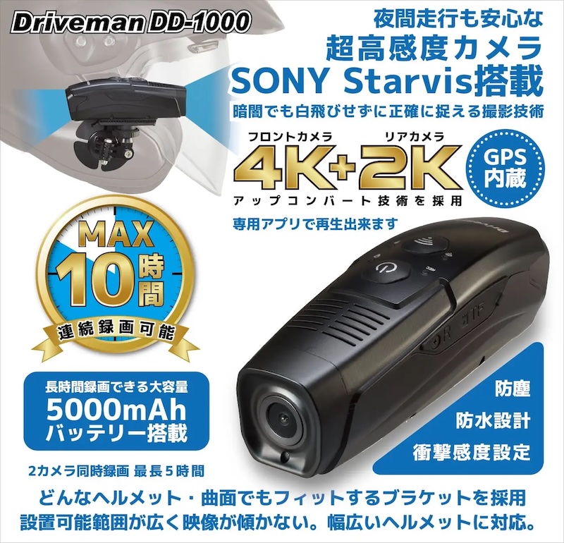 対象製品: ヘルメット装着型バイク用ドライブレコーダー「Driveman DD-1000」