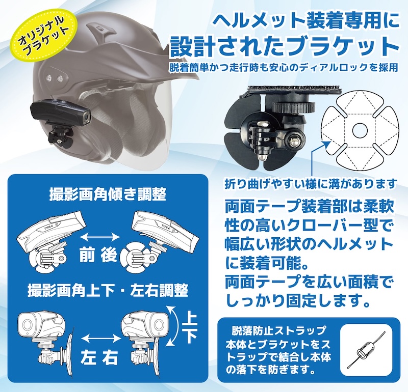 幅広いヘルメットに対応。さまざまな曲面でも取り付け可能なブラケット