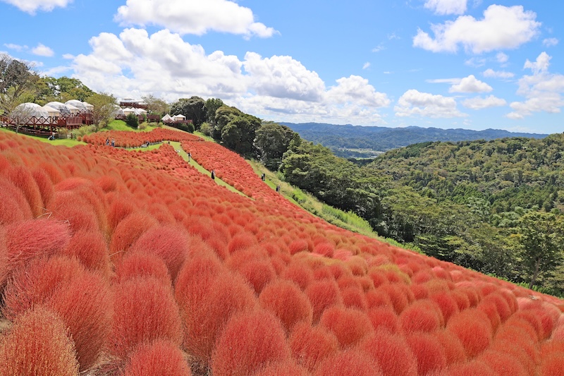 花と動物たちのエンターテイメントファーム「マザー牧場(千葉県富津市)」では、約8,000株の「コキア」が現在秋色への変化を始めており、秋を感じることが出来る秋色の景色が広がっています。