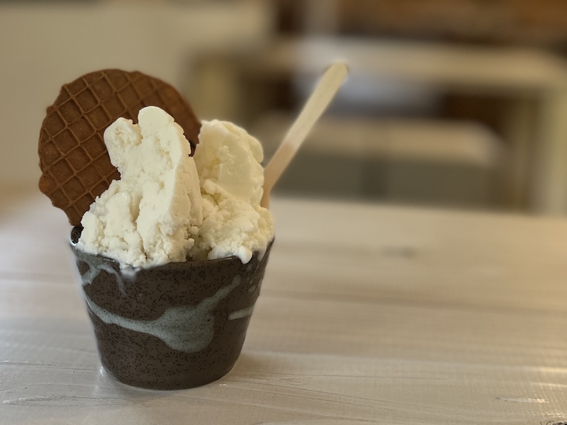 そば屋「蛍」が焙煎した新そばの実を使用した手作りジェラートを提供。豊かな風味を堪能できます。