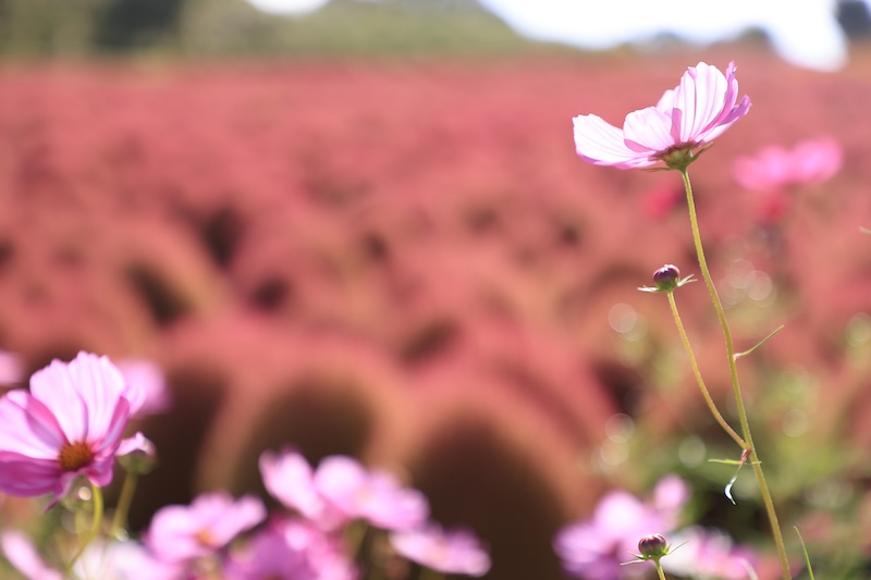 【広島/世羅】コキアの紅葉が始まりました コキアとコスモスの丘《Flower village 花夢の里》