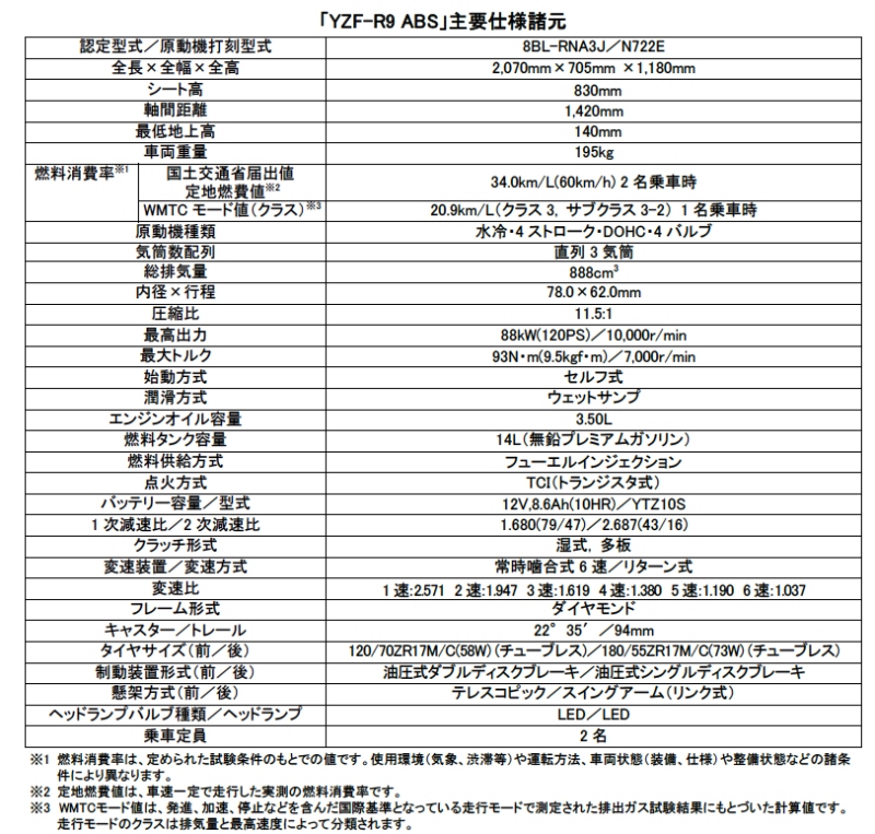 ヤマハ発動機販売株式会社は、“クロスプレーン・コンセプト※1”に基づく水冷・4ストローク・DOHC・直列3気筒・888cm.エンジンを軽量アルミフレームに搭載したスーパースポーツモデルの新製品「YZF-R9 ABS」を10月30日に発売します※2。