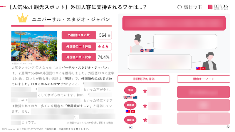 ここからは、独自調査で明らかとなった人気観光スポットの分析結果を一部ご紹介します。