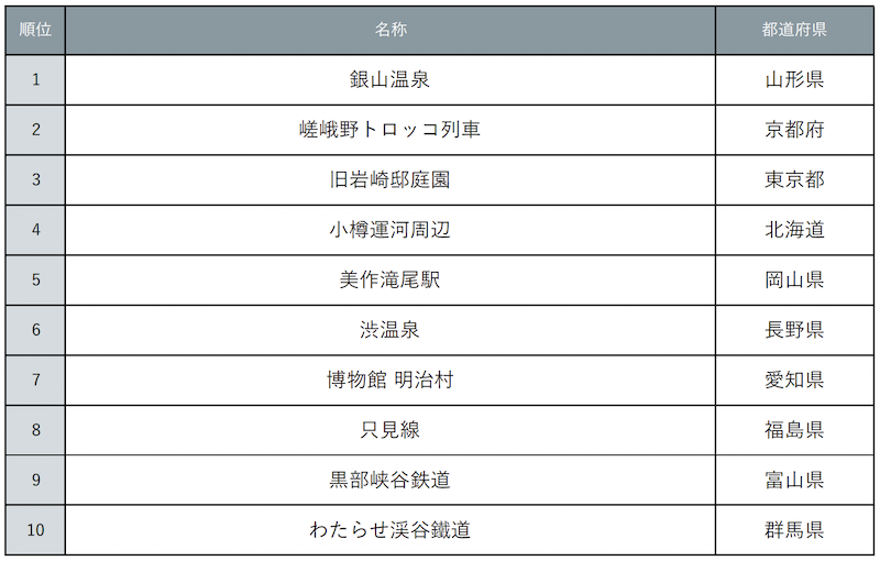 ■温泉街や列車、レトロな建築など、紅葉とのコントラストが美しい絶景スポットがランクイン
