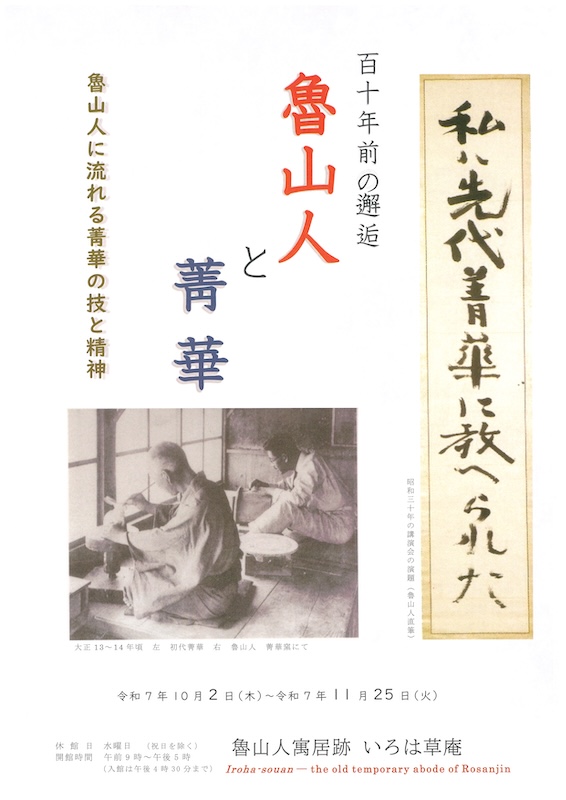 魯山人寓居跡いろは草庵(加賀市山代温泉)では、ふたりの芸術的交流をひもとく特別展「百十年前の邂逅 魯山人と菁華」を開催しています。
