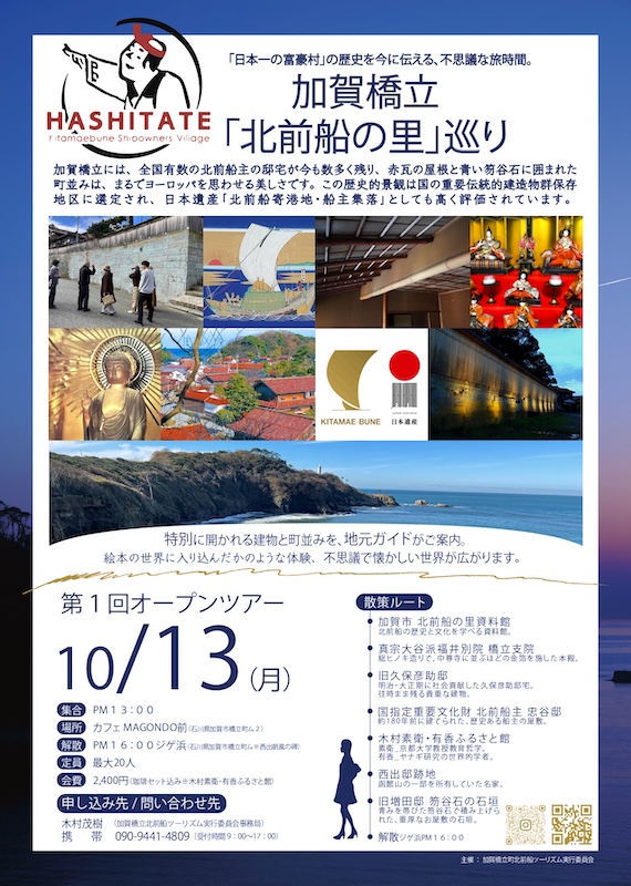 かつて北前船交易で栄えた港町・橋立を、地元ガイドとともに巡る特別企画「加賀橋立 北前船の里巡り 第1回オープンツアー」を開催します。