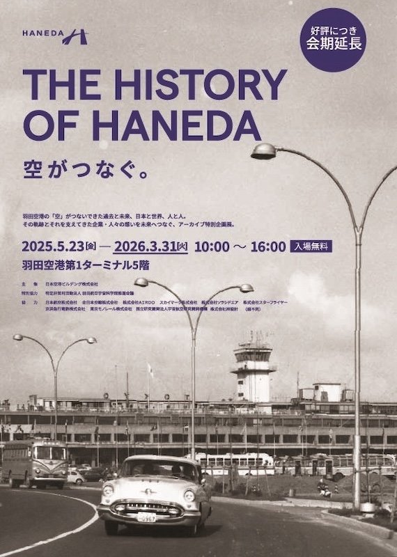 日本空港ビルデング株式会社は、現在第1ターミナル5階にて開催中の特別企画展「THE HISTORY OF HANEDA空がつなぐ。」について、好評につき会期を2026年3月31日(火)まで延長することを決定しました。