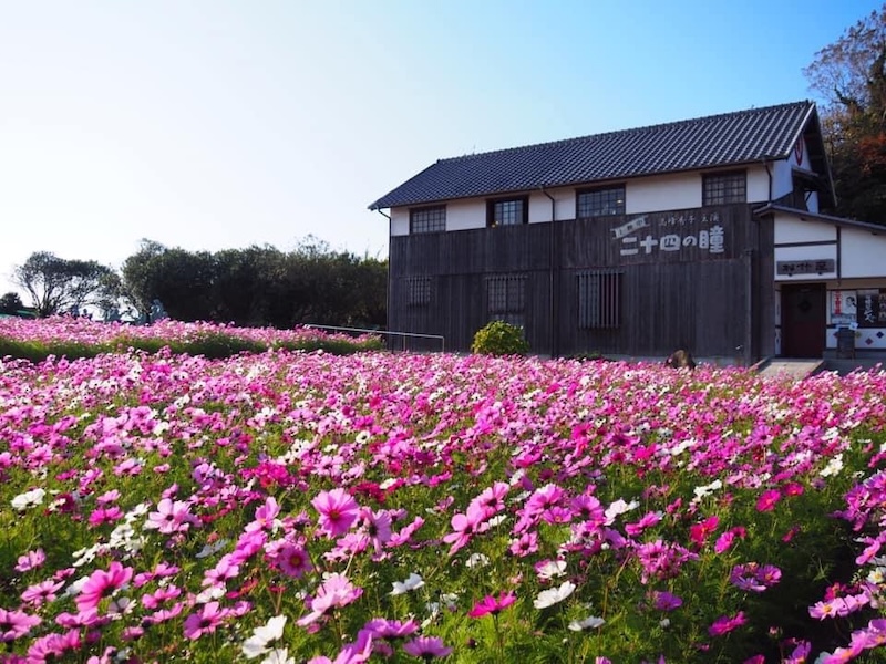 離島である小豆島の秋は見どころが多く、日本三大渓谷美のひとつ寒霞渓の紅葉、オリーブ発祥地の小豆島オリーブの収穫時期、そして今年は昭和100年。ノスタルジックな村に秋桜が咲き誇る二十四の瞳映画村。