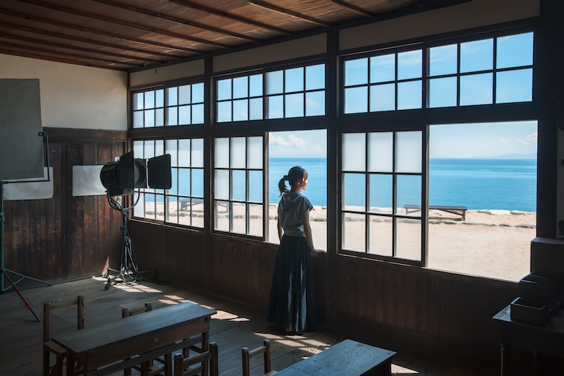 ノスタルジックな木造校舎から瀬戸内海を見渡す景色は誰もが1枚撮ってしまいたくなる。