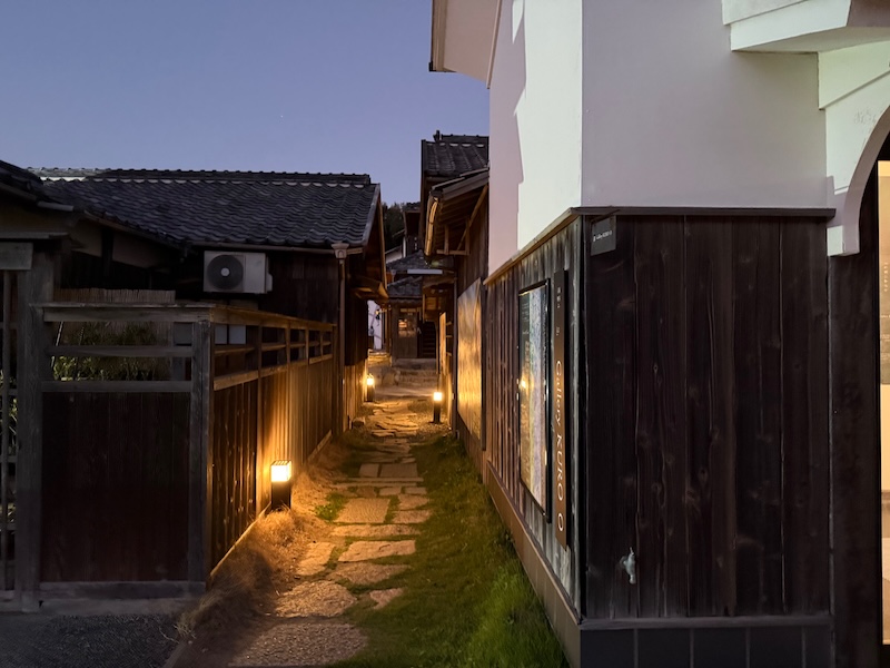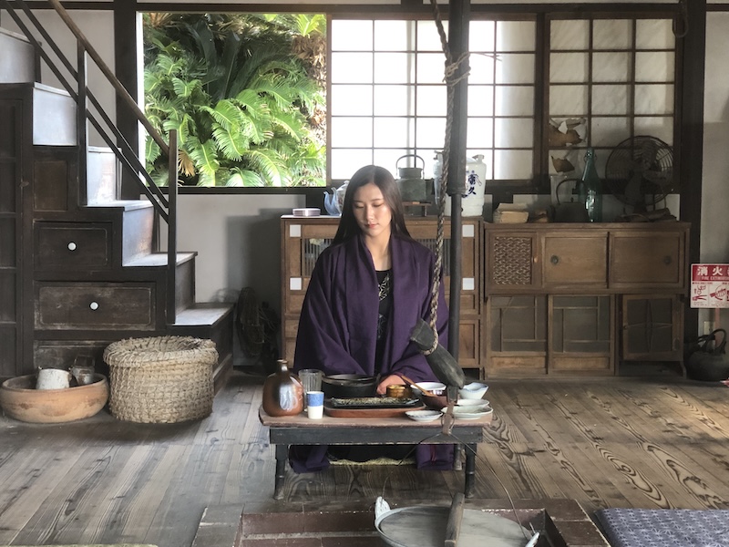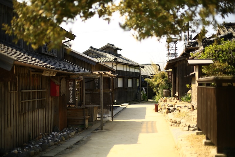 CMや写真集など様々な撮影で使用される郷愁漂う村の通り。「絣の着物」に着替えての散策は、映画のワンシーンそのもの。