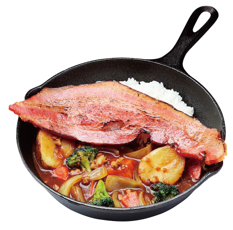 恵庭産放牧豚「こな雪とんとん」のベーコンが、大胆にのった人気の一品。具だくさんな野菜と、放牧豚の旨みを楽しめるスパイスカレーが味わえます。車で約7分の距離には2つの泉質を楽しめる浴槽やサウナ、岩盤浴など設備も充実している温泉施設があるので、グルメを楽しむ前後で立ち寄ってみて。