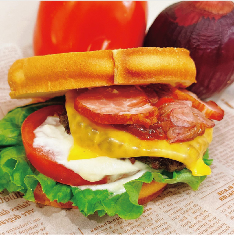 音更産食材がたっぷり入った、食べ応えのあるバーガー。音更産大袖振大豆やきの「e-びーふ」などを使ったパテと紫タマネギのマリネで、ボリューミーなのにさっぱりとした後味で食べやすい一品です。『北海道じゃらん』道の駅ランキング2025で総合1位を獲得した道の駅で、広々とした「なつぞら市場」では地元の農畜産物を使った加工品や特産品、生産者直売の野菜も販売しています。