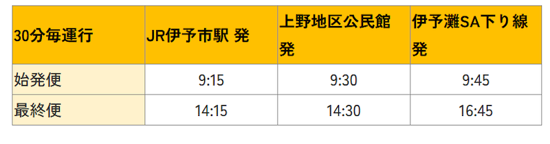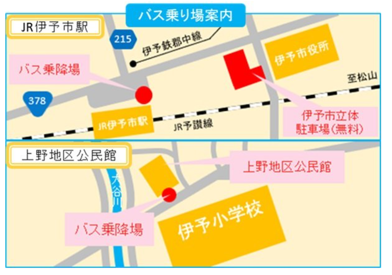 JR伊予市駅前と上野地区公民館前からご乗車いただけます。