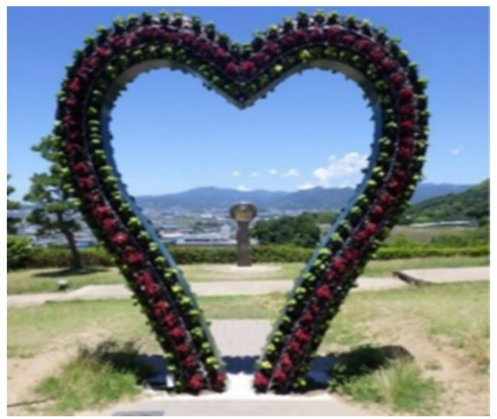 愛媛大学社会共創学部と協働し、同学部の学生の現地調査、当社との意見交換を踏まえ、令和2年12月に伊予灘SA上り線にハート型トピアリーを設置し、令和5年には第2期としてハート型トピアリーとの園地景観の調和を目的とした園地改良を実施しました。