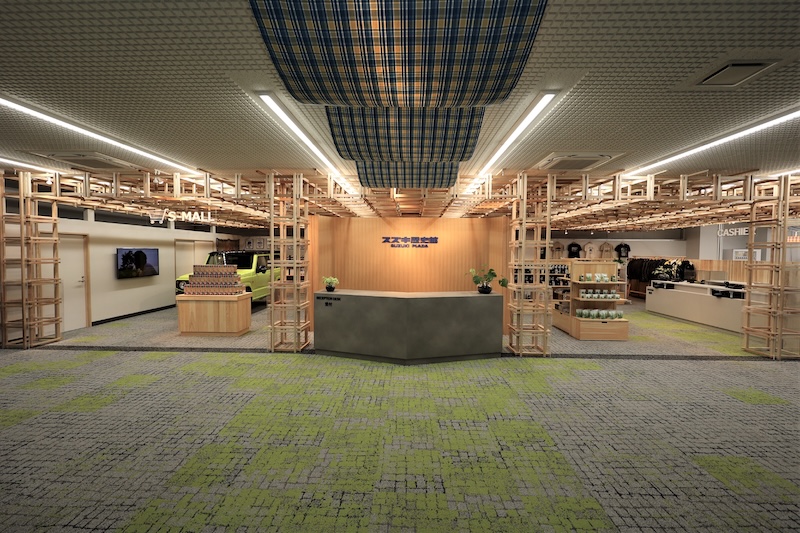 店舗には天竜材や遠州織といった浜松やスズキにゆかりのある素材を活用