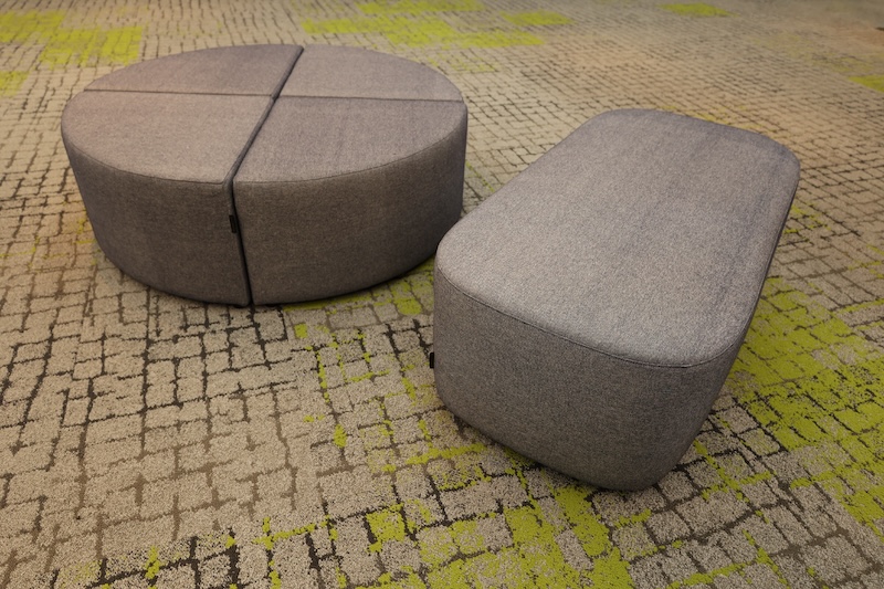 店舗内装は、スズキの祖業である織機の木組みから着想を得た温かみのあるデザインを採用、木材は地元浜松産の天竜材を活用し、天竜スギを木組みやパーテーションなどに、天竜ヒノキを陳列棚に使用しています。また、歴史館入口から受付までの天井部や天吊りライトのシェードに遠州織、現存する鈴木式織機で織られたソファの張地などに使用するなど、浜松やスズキにゆかりのある素材を随所に活用しています。