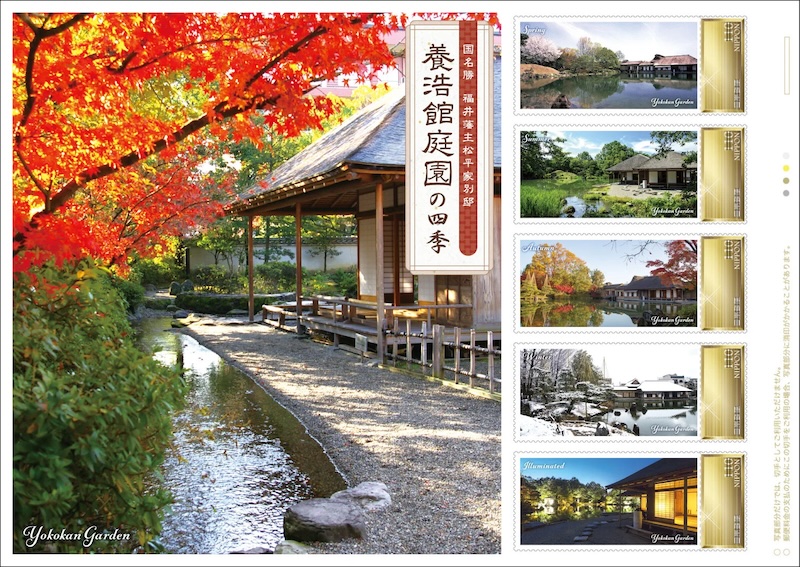 郵便局での販売福井県内の一部郵便局※2でもオリジナルフレーム切手の販売を行います価格:1,100円/1シート※3※2 福井市・鯖江市・越前市・池田町・越前町・南越前町内の全郵便局(計114局)及び郵便局のネットショップにおけるweb販売(web販売は11月5日(水)0時15分から)▼日本郵便(株)HPhttps://www.post.japanpost.jp/kitte_hagaki/stamp/frame/detail.php?id=3578※3 養浩館庭園絵葉書はついていません