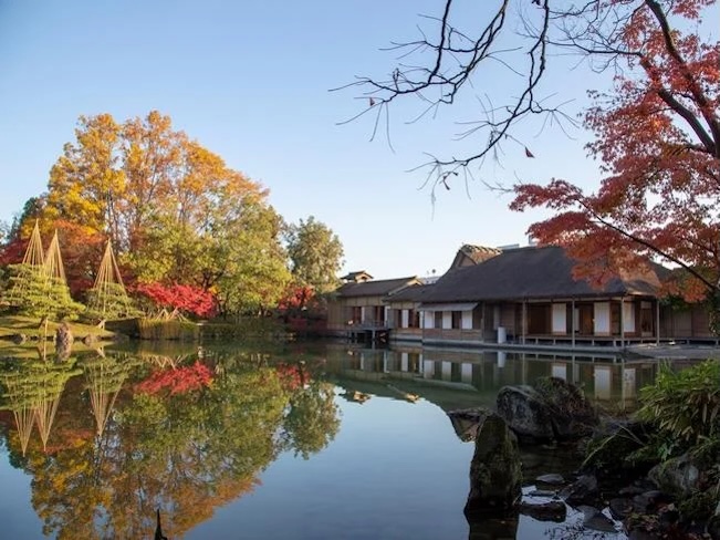 江戸時代につくられた庭園で、大きな池を中心に広がる庭と、池に浮かぶようにして建つ数寄屋造りの屋敷の優美さは米国の専門誌「ジャーナル・オブ・ジャパニーズ・ガーデニング」による日本庭園ランキングでも18年連続上位10位に選ばれるほどです。