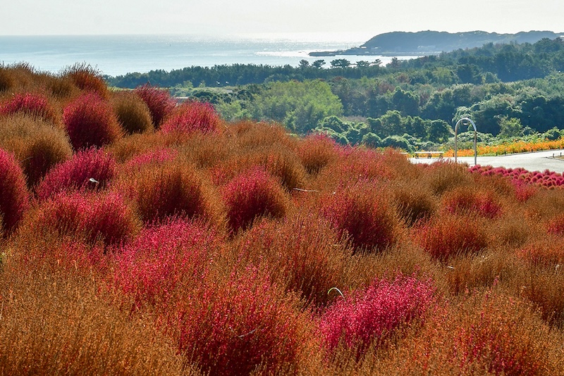 コキア 赤から茶のグラデーションへ(国営ひたち海浜公園)