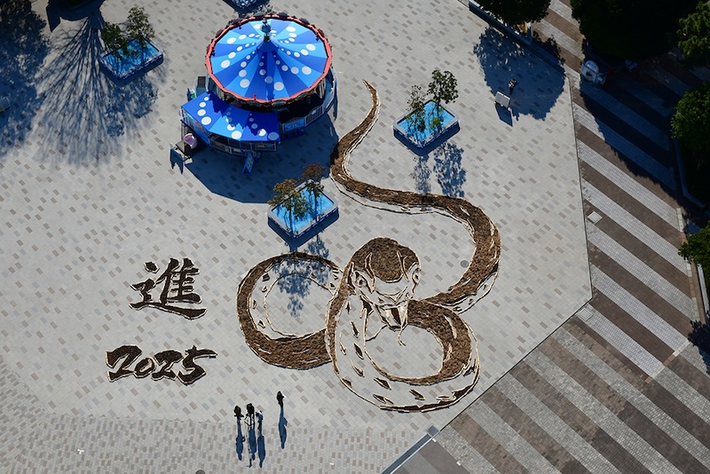 コキアはヒユ科ホウキギ属で、ユーラシア大陸の乾燥地帯原産の一年草です。和名の「ほうき草」は、かつて枝や茎を乾燥させて、ほうきを作っていたことに由来します。紅葉を終えた一部のコキアは乾燥・保管され、冬季に登場する「干支の巨大地上絵」の資材として利用されます。丘を彩ったコキアが、季節を超えて新たな姿へと変化する様子も見どころの一つです。