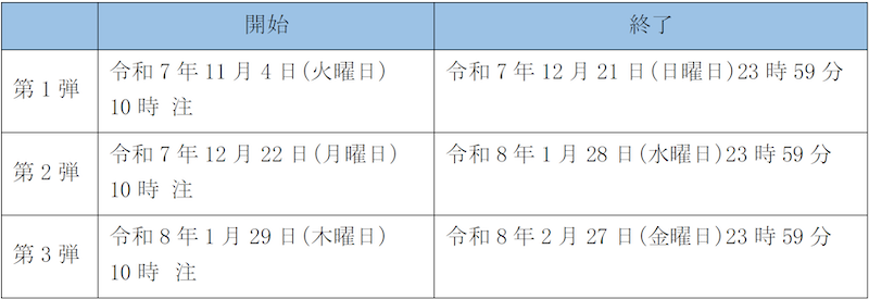 令和7年11月4日(火曜日)10時から令和8年2月28日(土曜日)23時59分まで