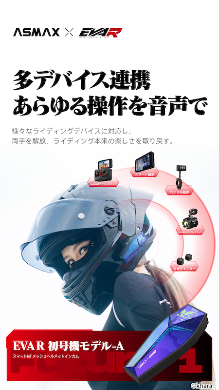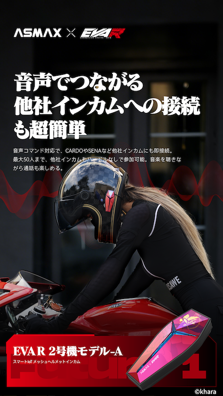 株式会社カスタムジャパンは、ASMAX(アズマックス)とEVA RACING(エヴァレーシング)のコラボレーションによる次世代スマートIoTヘルメットインカム「EVA R モデル」(初号機A/B、2号機A/B、全4モデル)を2025年11月1日(土)より日本総販売代理いたします。