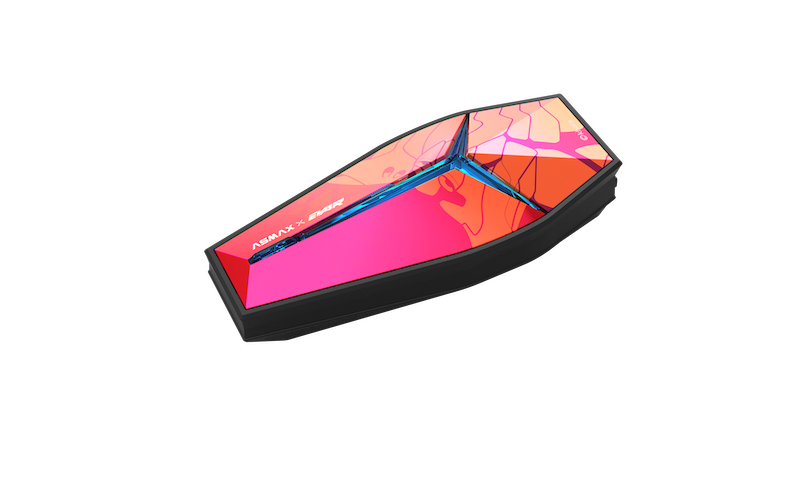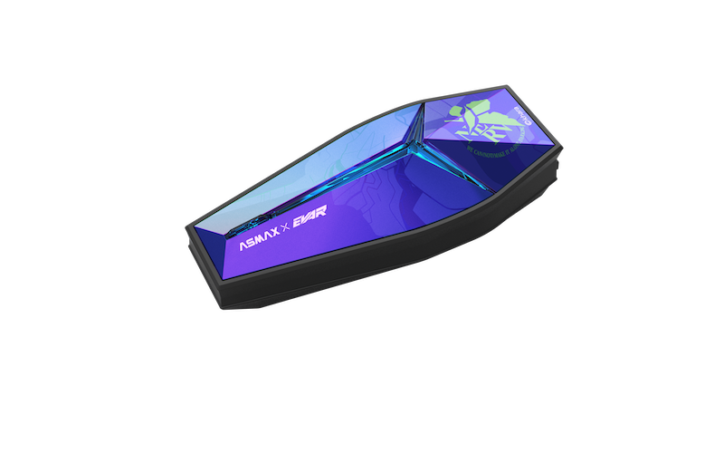 EVA‐01/EVA‐02をモチーフにした特別外装とカラーリングLED(呼吸パルス調)。ヘルメットに馴染む薄型モジュールで、マグネットベースによるストレスフリーな着脱にも対応します。