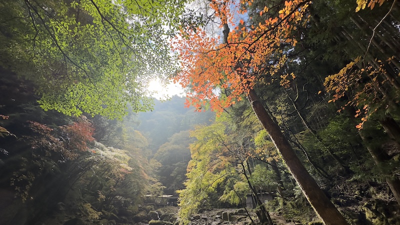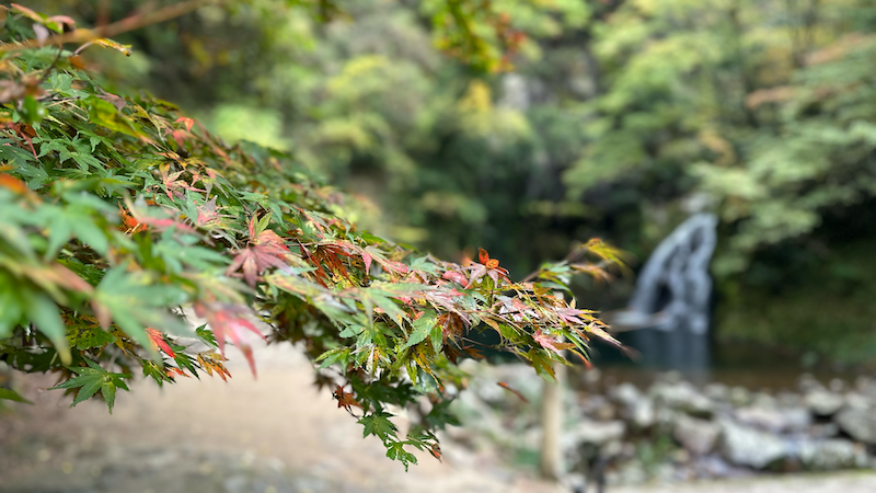 現在、赤目四十八滝渓谷内では、木々が少しずつ鮮やかに色付きはじめ、渓谷全体が秋色へと移ろいつつあります。まもなく紅葉のピークを迎え、最も美しい季節が訪れます。