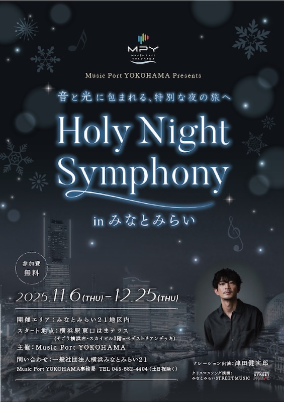 また、イルミネーション開催期間中、様々なイベントを開催いたします。本点灯を開始する11月6日(木)から12月25日(木)まで、Music Port YOKOHAMA委員会主催で津⽥健次郎⽒のナレーションとクリスマス音楽とともにイルミネーションを楽しめる「Holy Night Symphony in みなとみらい」が開催されます。11月28日(金)~12月25日(木)には、クリスマスの装飾が施された多数のヒュッテ(木製の露店)が並び、クリスマスならではのお菓子や食べ物等が販売される「みなとみらい Christmas Market 2025」を協力企業のご協力により初開催いたします。12月20日(土)には、昨年好評いただいた「西区キャンドルアート 2025」もお楽しみいただけます。
