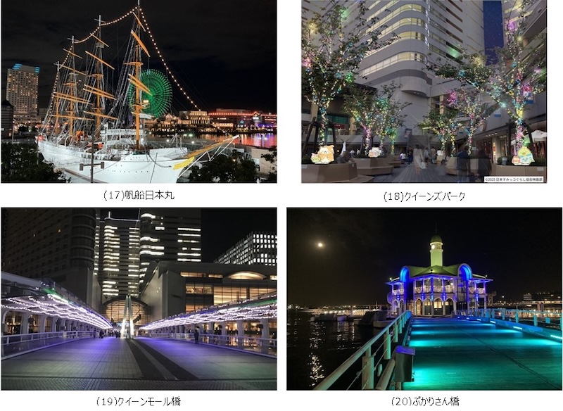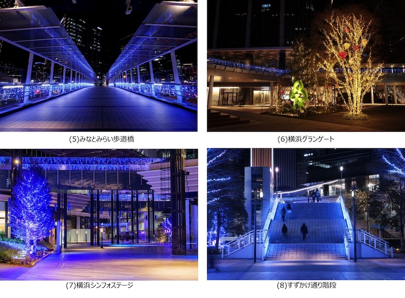 実施エリア:横浜駅東口、はまみらいウォーク、みなとみらい歩道橋、グランモール公園、帆船日本丸(船体整備期間は除く)など各エリア