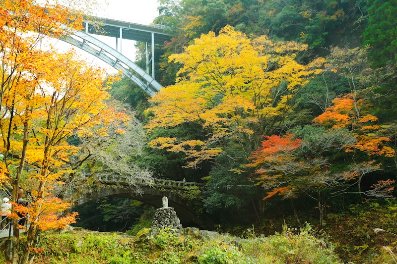 五ヶ瀬川支流の日之影川上流部に広がる紅葉の名所・見立渓谷。「祖母・傾・大崩ユネスコエコパーク」の中にあります。変化に富む岩と秋の紅葉が見事に調和した渓谷美は圧巻。毎年11月には「見立渓谷紅葉祭り」も開催されています。