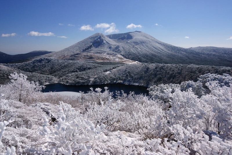 えびの市の南に広がるえびの高原。標高1200m、最初の国立公園に指定された霧島錦江湾国立公園の北部に位置し、豊かな自然の宝庫としても知られる県内屈指の観光エリアです。冬には澄んだ空気の中、見事な白銀の韓国岳を見ることができます。