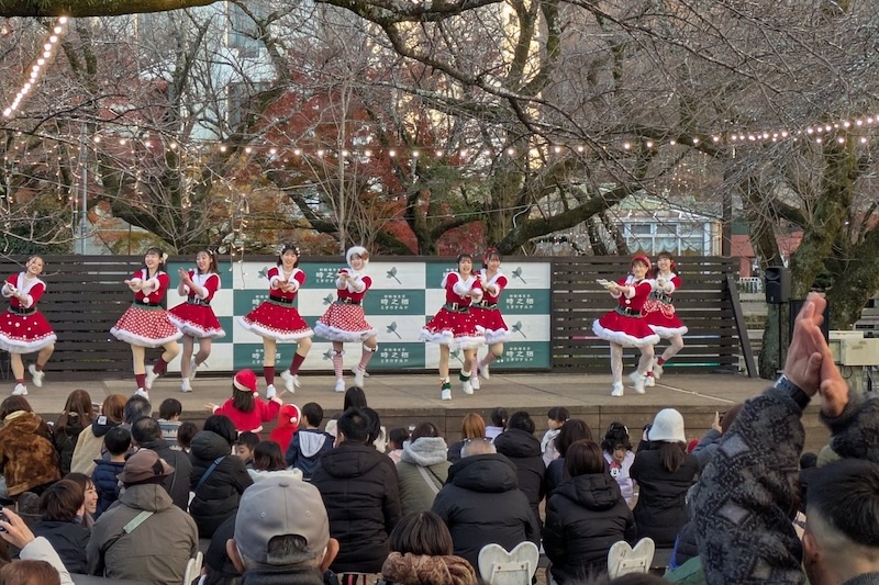 舞台は、時之栖園内の屋外ステージ「さくらSQUARE」。16:15~と18:00~の2回公演で、クリスマスをテーマにしたスペシャルダンスステージが繰り広げられます。キラキラと輝くイルミネーションの中で、笑顔あふれるダンサーたちが冬の夜を温かく彩ります。楽曲や振付、衣装はすべてクリスマス仕様。子どもから大人まで楽しめる構成で、ファミリーやカップルにもおすすめです。