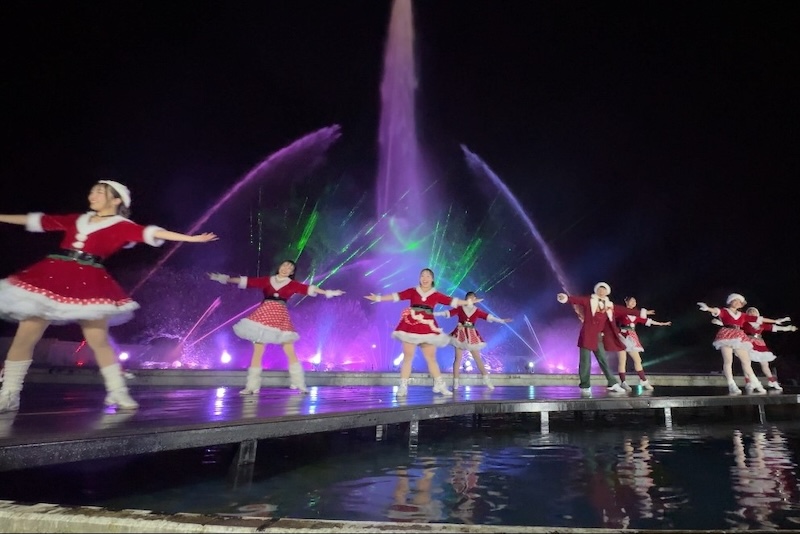 噴水レーザーショーとダンスショーのコラボレーション、視覚と聴覚の両方で、ここ時之栖でしか味わえない特別な体験をお楽しみください。世界的振付師「SHOJIN」氏プロデュースによる華やかなダンスパフォーマンスと、最高到達点150メートルを誇る噴水レーザーショー「ヴェルサイユの光」が融合し、光と音の演出が一体となり、より幻想的なクリスマスムードを演出します。ぜひ、ダンスショーの雰囲気に合わせて拍手や歓声をお送りいただき、パフォーマンスに参加して一緒に楽しみましょう!