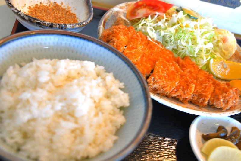 さて、昼前になったので地元の方からお聞きした魚沼IC近くのとんかつトンキーに昼食をと取りに伺いました。同店のトンカツ定食は魚沼産コシヒカリと魚沼産もち豚を使用しており、もちもちしたお米にサクサクした衣のジューシーなトンカツがとても合います。ちなみに国道17号線沿いにあるおにぎり屋「いちば屋」では、魚沼産コシヒカリを使用した具沢山のおにぎりを20種類近く楽しむことができます。