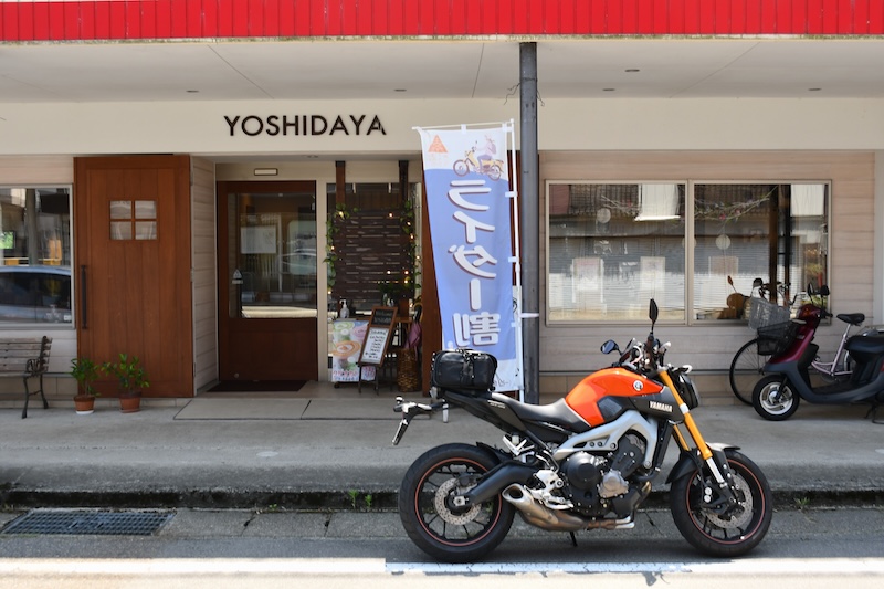 その後、小出公園の展望所に立ち寄り、市街地にある洋菓子の吉田屋に。実は魚沼市ではライダーに同市に来訪してもらおうと「ライダー割・サイクリスト割」を実施しています。吉田屋はその加盟店で、ケーキとセットで飲み物が無料となる割引を行っています。店内にあるホンダモンキーを見ながら食後のデザートを頬張りました。