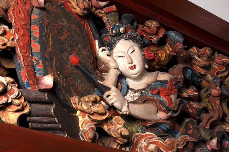 1814年、江戸雑司ヶ谷生まれ。若くして彫刻師として名を挙げ、石川雲蝶と名乗りる。越後に入った後、多くの木製彫刻を初め、石彫刻や絵画を残した。色鮮やかで躍動感溢れる作風で見るものを魅了する。代表作としては魚沼市の西福寺開山堂の天井を飾る「道元禅師猛虎調伏図」や同じく魚沼市の永林寺の欄間を彩る「天女」など。