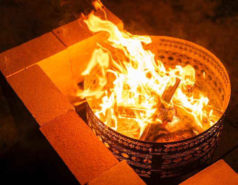 巨大な焚き火BARでサウナ後も暖か!