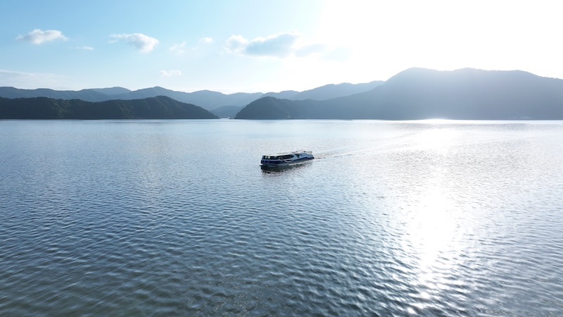 福井県美浜町は、海、山、川、湖など多様な自然に恵まれた人口約9,000人弱の小さな町。町では、地域の魅力を最大限に引き出すため、国内初となる再生可能エネルギーで航行する電池推進遊覧船を開発しました。