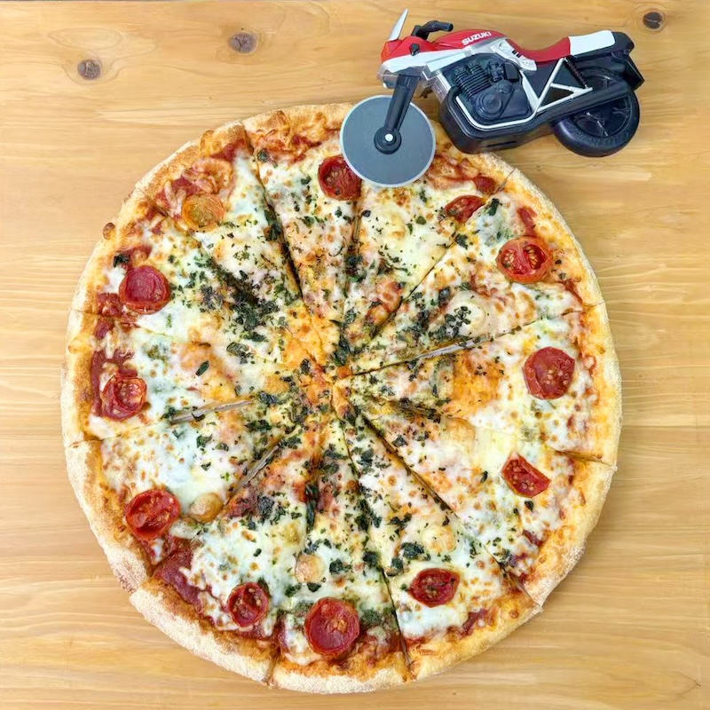 「ピザカッターナ」は、前輪部分がピザカッターとして機能するユニークなアイテム。使用後は付属の専用ホルダーにセットしてインテリアとして飾ることができ、キッチンの雰囲気を一気に引き締めてくれます。